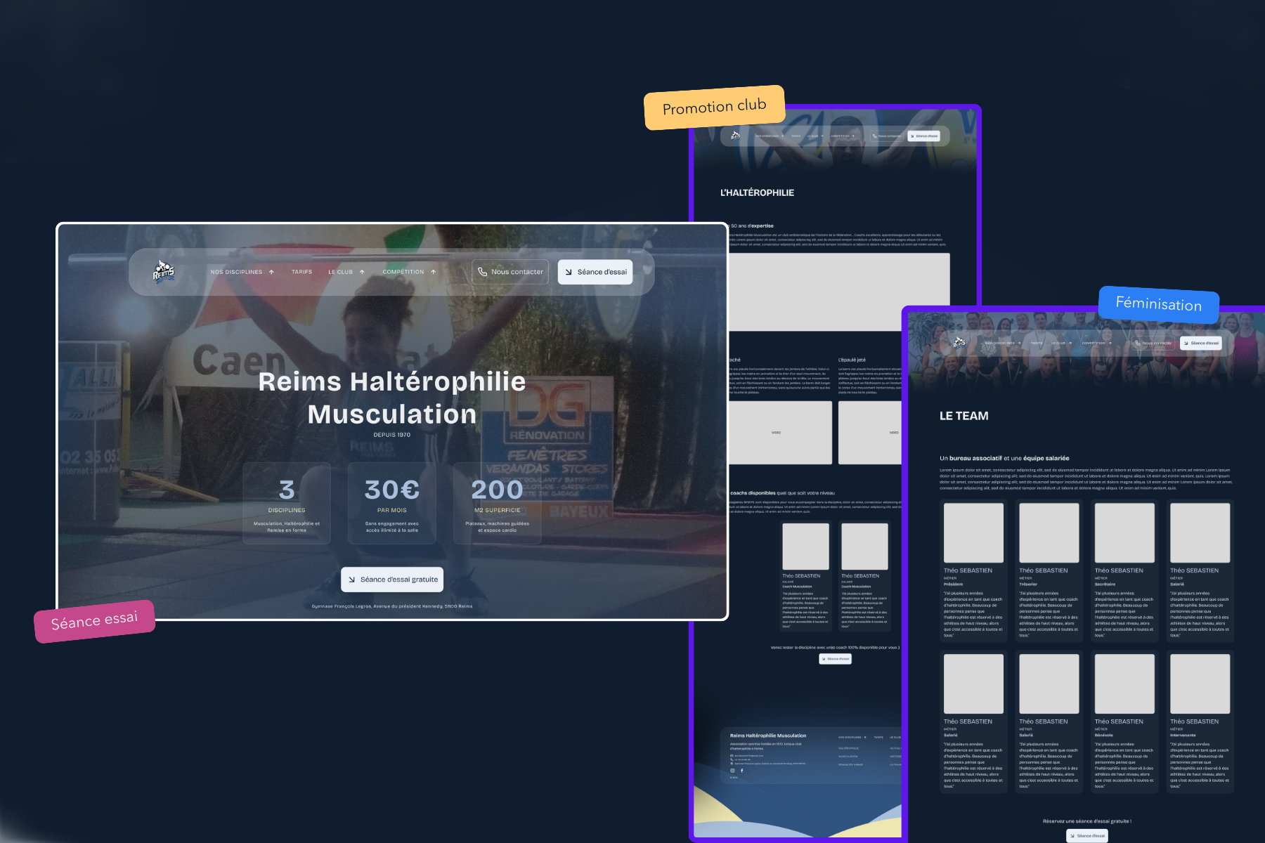 Projet de refonte du site internet d’un club d’haltérophilie. Le site n'est plus mis à jour par l'association, non adapté aux codes du numérique actuels, et ne met pas en avant un parcours clair et accessible de découverte de la discipline.